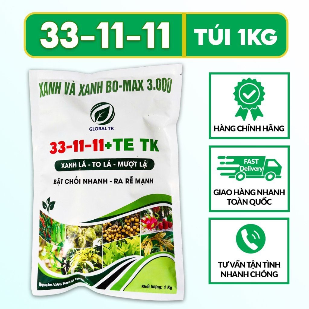Phân Bón 33-11-11+TE Bật Chồi Nhanh, Ra Rễ Mạnh, Xanh Lá, To Lá, Mướt Lá, Tăng Quang Hợp Lá, Nuôi Trái Tốt - Túi 1kg